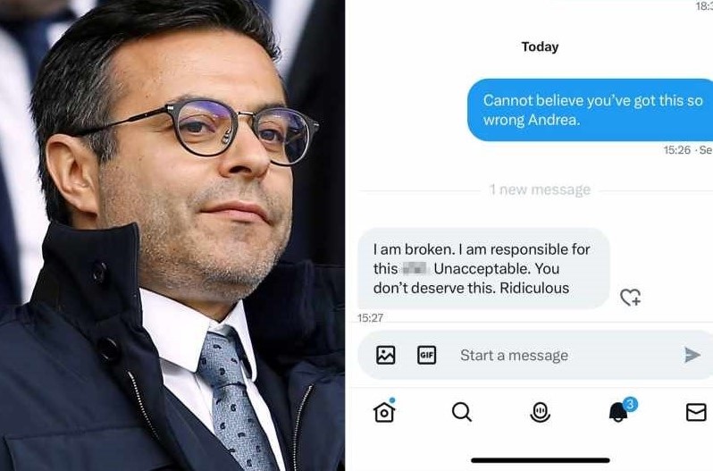 Właściciel Andrea Radrizzani wysłał wiadomość do Conora McGilligan, gdy Bournemouth wygrało 4-1: „Jestem zdruzgotany. Jestem odpowiedzialny za to gówno”.