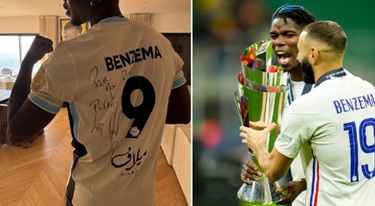 Benzema, który obecnie gra dla saudyjskiego klubu Al-Ittihad, wręczył Pogbie koszulkę z jego własnym imieniem, wraz z autografem i napisem: „Dla mojego brata Piche.”